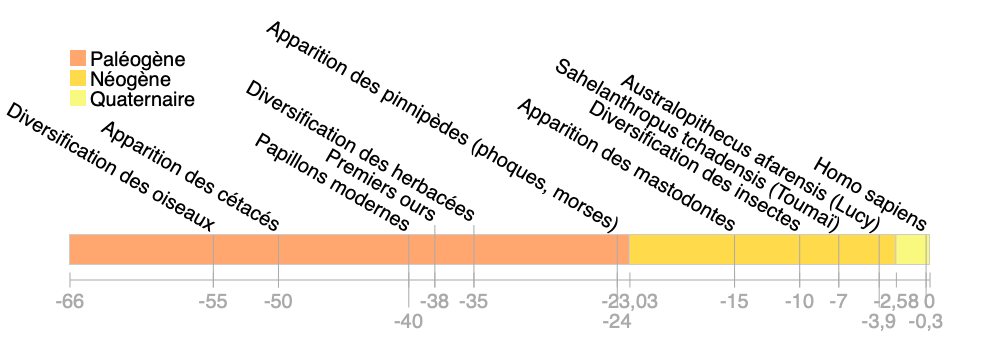 | Cénozoïque | -66'000'000 | Extinction du Crétacé |